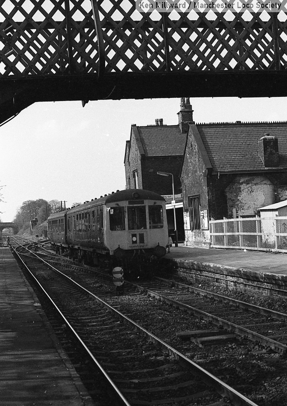 km011-17: 03.05.80 Woodley Station. Rosehill Marple to Manchester Piccadilly calls in the shape of a Class 100 DMU. [HP/5]