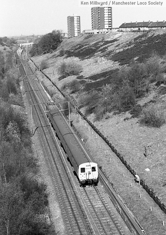 km011-19: 03.05.80 Godley. Class 506 EMU working from Hadfield/Glossop to Manchester Piccadilly. [HP5/5]