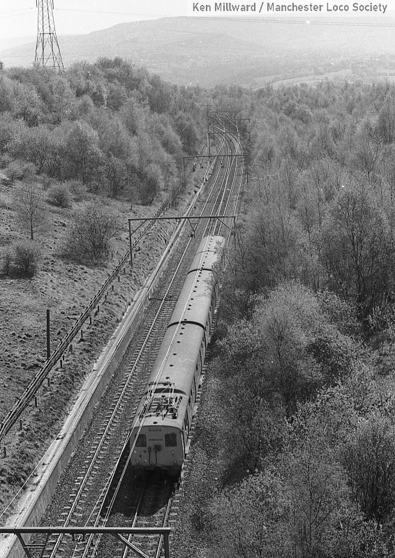 km011-18: 03.05.80 Godley. Class 506 EMU heading for Hadfield/Glossop. [HP5/5]