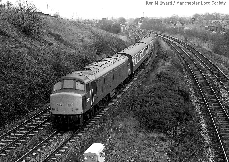 km019-09: 01.12.81 Romiley Junction. 40 052 with a newspaper train. [FP4/27]