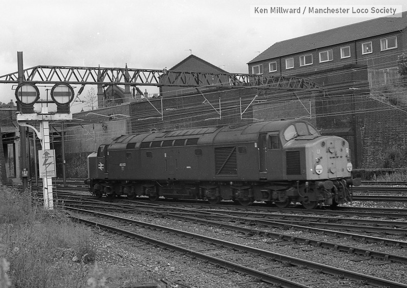 km004-33: 22.07.79 Edgeley Junction No 2. 40 102 passing. [FP4/8]
