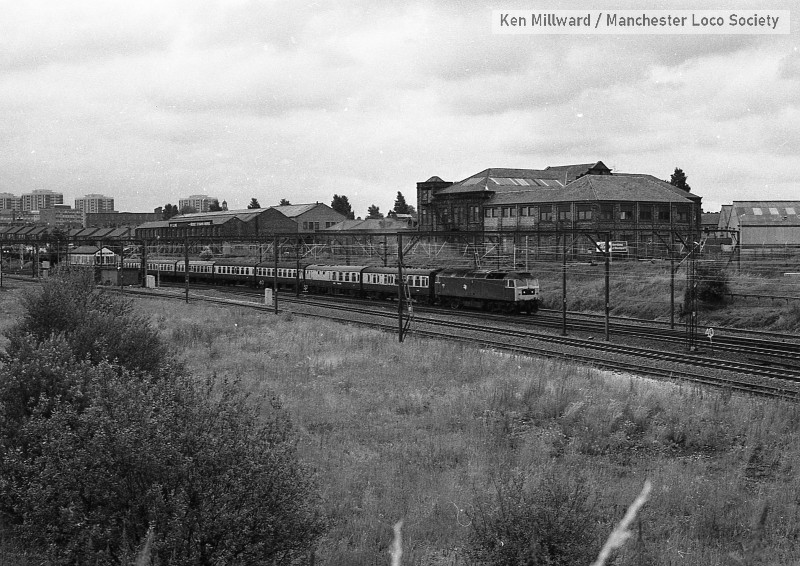 km004-38: 22.07.79 Edgeley Junction. 47 501 passing No 1 box with an up express. [FP4/8]