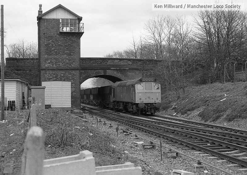 km005-15: 22.04.79 Northenden Junction. 25 110 with loaded ICI hoppers. [FP4/4]