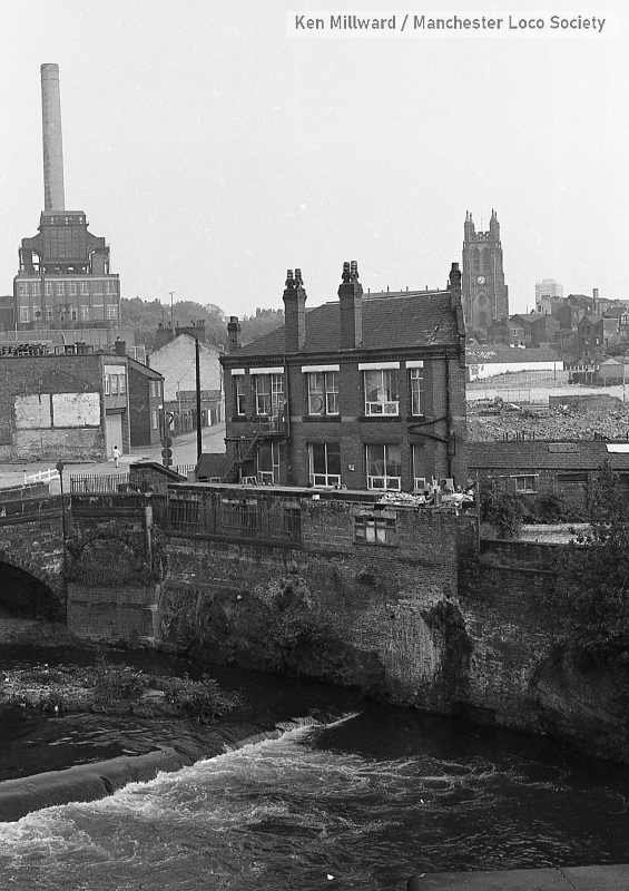 km005-42: ...06.79 Stockport. Confluence of the Rivers Tame and Etherow, St Marys' Church on the skyline. [FP4/6]