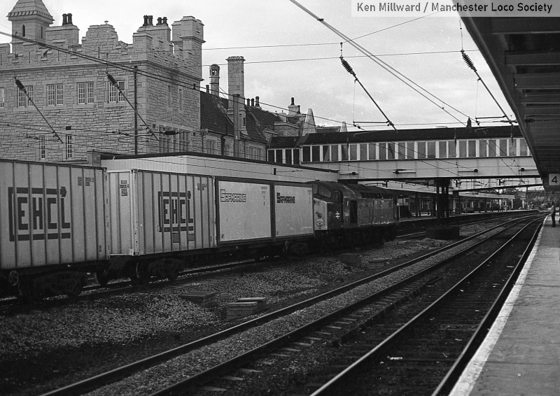 km007-04: 08.08.79 Lancaster Station. 40 093 heading north with a Freighliner service. [FP4/11]