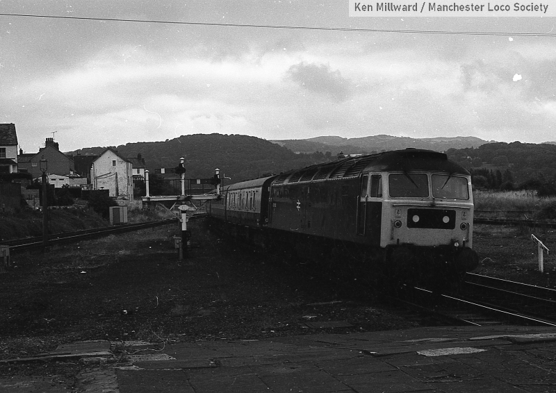 km007-07: 11.08.79 Llandudno Junction. 47 545 approaching the station with a Holyhead train. [FP4/11]