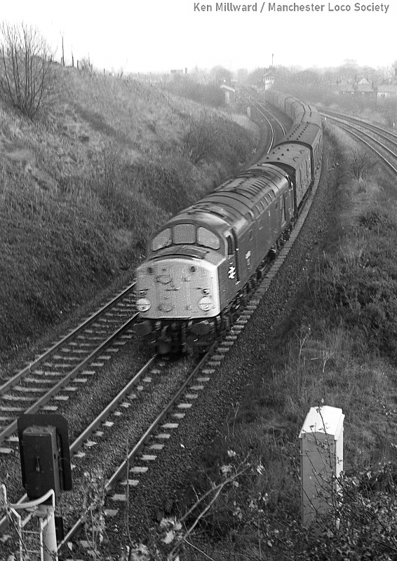 km019-09: 01.12.81 Romiley Junction. 40 052 with a newspaper train. [FP4/27]