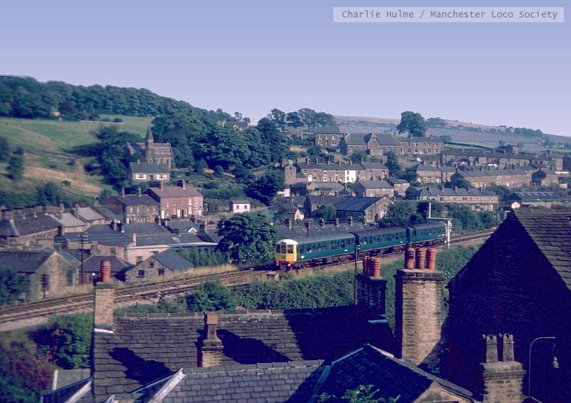 ch006-60: ......71 Whaley Bridge. View from Reservoir Road with DMU arriving