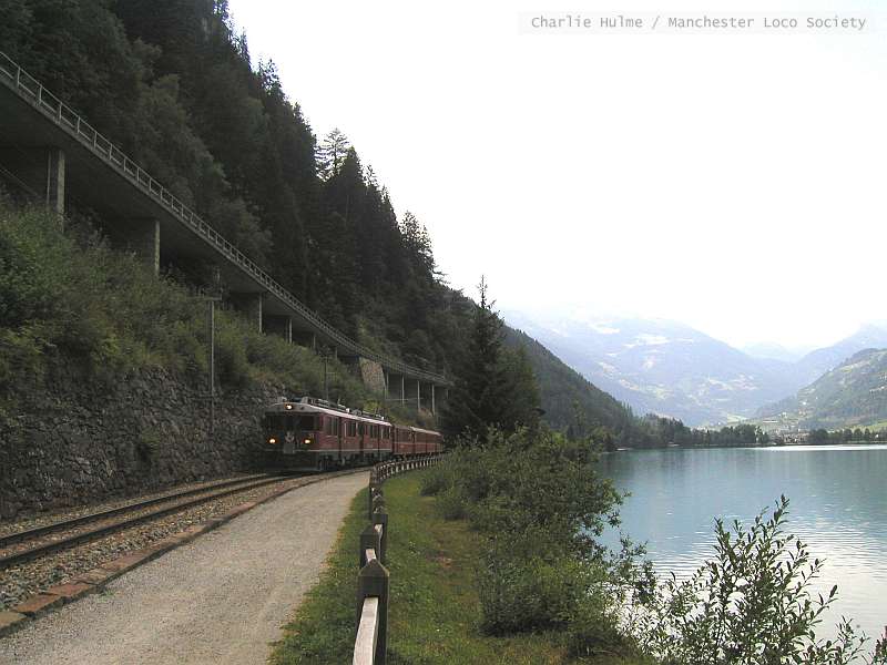 ch115-40: 17.07.03 Lake Poschiavo shore line. Railcar 51