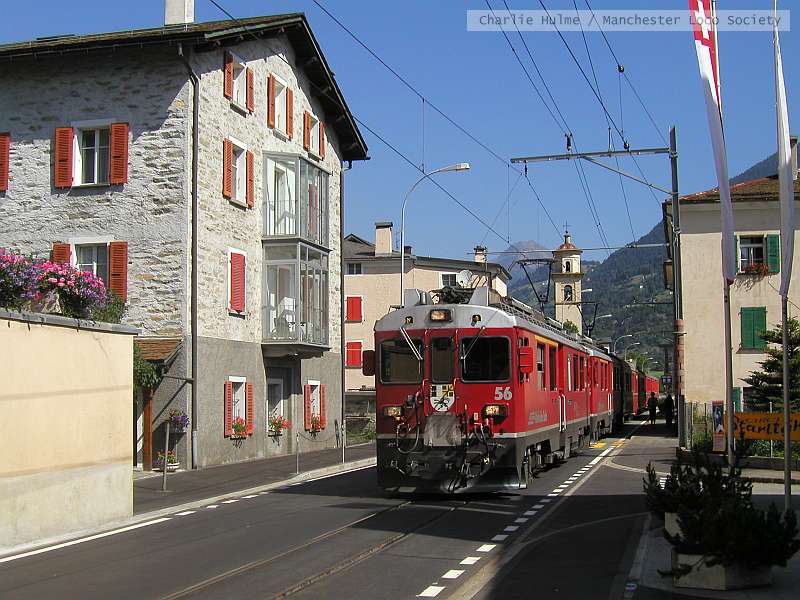 ch115-38: 17.07.03 Poschiavo. Loco 801 double-heading railcar 47