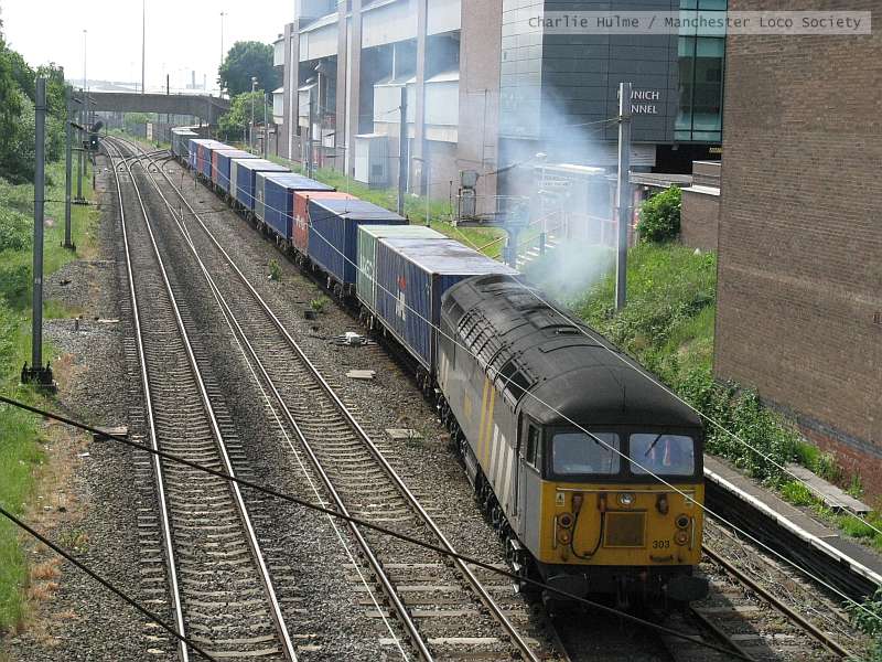 ch152-14: 29.05.08 Pomona. Fastline 56 303 departing Trafford Park