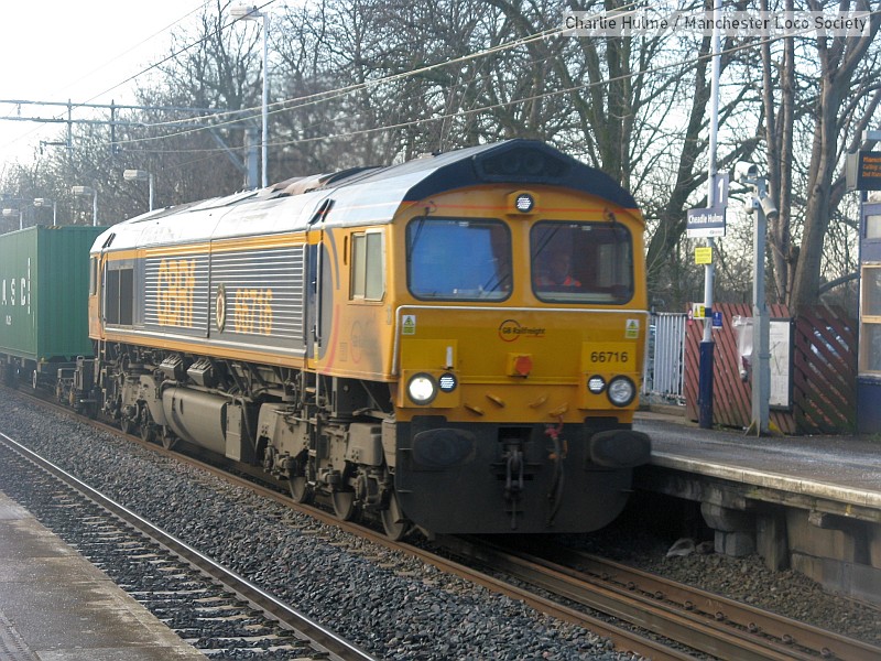 ch197-16: 06.02.15 Cheadle Hulme. 66 716 'Locomotive and Carriage Institution Centenary 1911-2011' on Felixstowe - Trafford Park 11:14