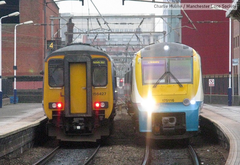 ch197-28: 12.02.15 Deansgate. 156 427 and 175 116