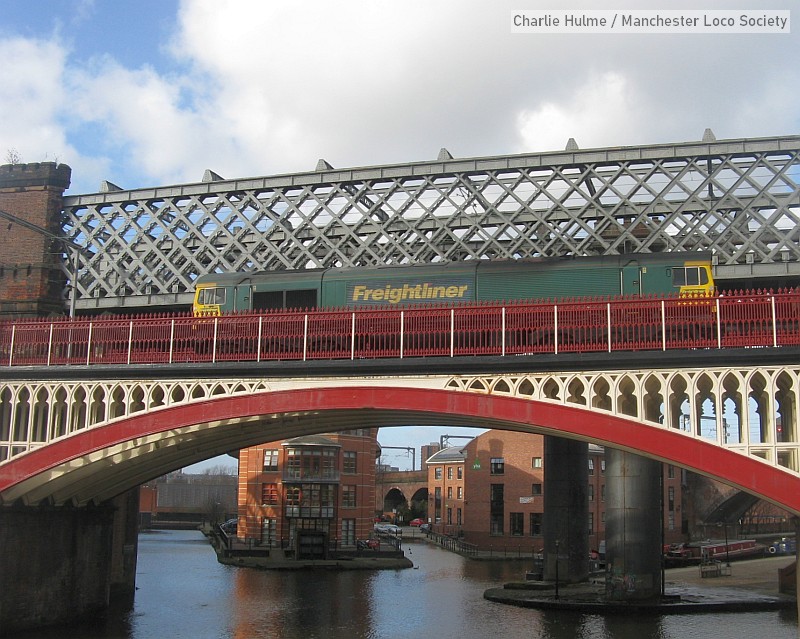 ch197-35: 26.02.15 Castlefield. 66 on iron bridge