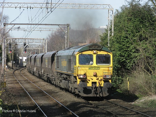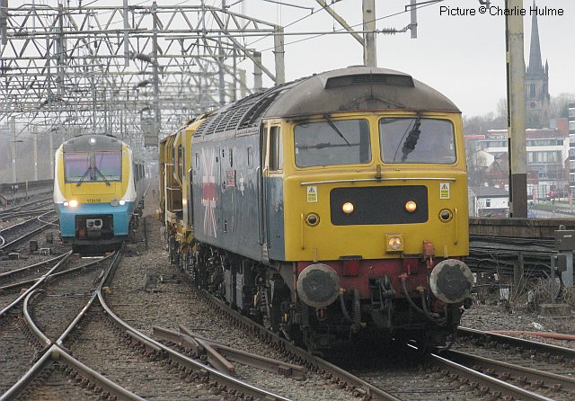 Local Rail News Pictures - Spring 2018Images by Peter Cross and Charlie Hulme![]() Network Rail measurement trains bring some exotic traction to our area at times. Class 73 electro-diesels have been seen on some workings, and on 3 April, a Derby - Crewe working saw two of the four Class 97/3 (ex Class 37) locos based in Coleham, Shrewsbury for working trains on the Cambrian lines which have ERTMS signalling. Above, 97 303 (37 178) brings its train down the Hazel Grove Chord, as seen from the upper level of the station car park... ![]() ... with 97 301 (37 100) on the rear, easily recognised as the only one of the four with the early version of the Class 37 nose which had connecting doors. Pictures by Peter Cross. ![]() The power station at Fiddler's Ferry near Warrington, built in 1971-73 for the Central Electricity Generating Board, is still burning coal, although it is apparently able to also burn 'biomass' blended with the coal. It had several owners before sale in 2004 to current owners by Scottish and Southern Energy, along with 'Ferrybridge C' power station in Yorkshire, for £136 million. Ferrybridge was shut down in 2016, and its remaining coal stock moved by rail to Fiddlers Ferry. At present it has contracts running to September 2019. In 2018 all its coal is imported, carried by rail from Redcar Bulk Terminal on Teesside. Trains run via York, Wakefield Kirkgate and the Calder Valley line, then Ashton Moss North Junction, Stockport (15:06) and Altrincham, returning overnight. Navigation Road Metrolink platform makes a good vantage point for this train, seen above on 5 April with 66 523. ![]() Class 40 D213 looking very smart, having had new numbers applied and a good clean, at the East Lancashire Railway event on 14 April which celebrated 60 years of the Class 40 diesels. Five were in traffic: 40 012 (D213), 40 013, 40 106, 40 135 and 40 145, with the National Railway Museum's D200 on static display (Peter Cross). ![]() The lines through Ashton Moss North Junction were closed for 16 days in April while the junction was re-configured and the signalling modernised, involving the removal of the signalbox, a much-altered Lancashire and Yorkshire structure. Peter Cross captured the scene on 14 April. ![]() A picture from a misty day around 1980, by Graham Neve (MLS collection) showing the box before the removal of the walkway, fitting of replacement windows and PVC cladding. It was built in 1911, with 56 levers, and controlled the connecting line from the Manchester Victoria - Stalybridge route towards Denton Junction. Control has been transferred to the new Rail Operating Centre at Ashburys. ![]() A signal arm arm on its 'dolly' being lowered from the junction home signal; the 'orange army' were provided with traditional refreshments (Peter Cross). There is an time-lapse video of the project on the Network Rail website. ![]() An unusual train noted at Stockport on 11 April featured 47 580 County of Essex hauling a track machine as the 11:06 Guide Bridge sidings to Dollands Moor yard, the interchange sidings for the Channel Tunnel. The train via Crewe and Northampton, and after a planned 55 minute wait at Willesden arrived at Dollands Moor at 20:25. 47 580, although operated on the main line by West Coast Railways, is owned by the Stratford Diesel Group, and has the Union Jack adornment which was first applied to two Class 47s (47 163 and 47 164) by the staff of the former Stratford Diesel Depot at the time of the 1977 Royal Silver Jubilee. Approaching on the fast line 175 110 on the 11:30 Manchester - Carmarthen. The machine, DR77908, is a ballast regulator built by Plasser and Theurer of Austria, but it was apparently not headed for the continent, as it returned on 17 April hauled by West Coast Railways loco 47 804. ![]() A familiar sight on the lines south of Manchester since the early 1990s have been the Hunslet-built Class 323 EMUs. 43 of these units were built, of which 17 were allocated to Manchester Longsight depot, the remainder working in the West Midlands; the situation remains the same today. The Manchester units worked the Hazel Grove, Crewe, Macclesfield and Glossop lines, replacing 1960-built stock. The 2000s saw them removed from Hazel Grove services (except for one daily train) in favour of an extension of the Macclesfield service to Stoke-on-Trent, where 323 224 is seen in bay platform 3 on 14 April. This unit, along with 223 and 225, has extra luggage space, as it was originally intended that they would work a Piccadilly - Manchester Airport Shuttle. The new West Midlands franchisee intends to replace the 323s with new trains, while the future of the Manchester ones appears to be uncertain. Second-hand Class 319 units from the south-east are being transferred to Northern, but these have four carriages, making them too long for the Stoke bay platform; it is likely that this service will be 323 operated until the arrival of the new Class 331 sets which are 3-car. 323s are also returning to all-day working on the Hazel Grove service from 20 May, with 319s taking on most of the Crewe line diagrams. ![]() Also noted at Stoke on 14 May,new franchise-holder West Midlands Trains are applying the brand 'London Northwestern Railway' to their long-distance services: this Class 350 was on a London - Crewe service. This operation has no connection with the LNWR train maintenance company once owned by Peter Waterman, and since sold to Arriva to become Arriva Train Care, or indeed the pre-1923 LNWR company except that the trains run on their routes. ![]() A recent change to freight working is that Freightliner have taken over from DB Cargo the Tunstead - Lostock Works workings, a much-reduced event since the other Northwich-area destination works closed down. This traffic was famous for many years among railway aficionados as the 'ICI Hoppers', and more recently as the local haunt of the Mirrlees-engined Class 60 diesels. The return empties are seen (above) from the New House Far