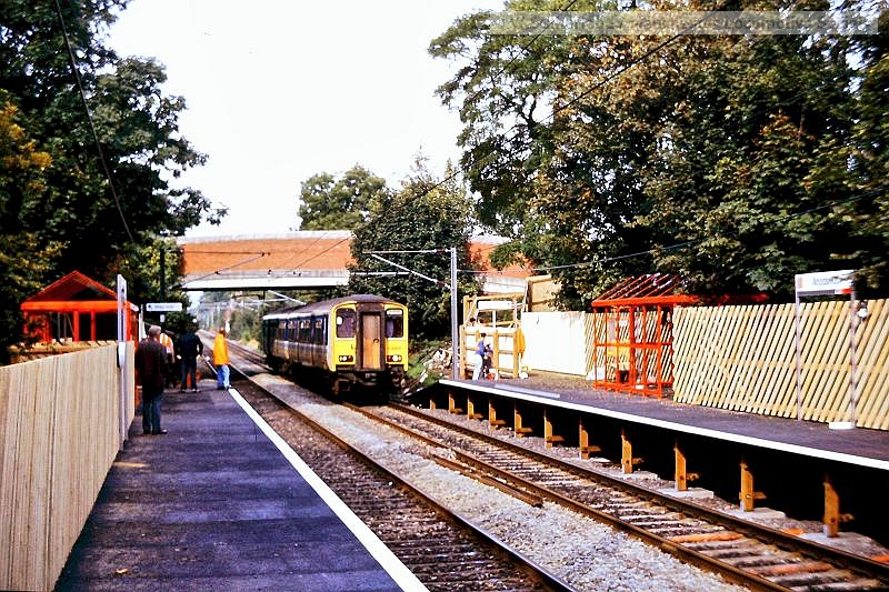 ws167-18: 01.10.90 Woodsmoor station opening day 150.210 on 10.58 Manchester-Buxton