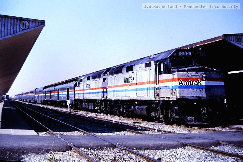 ws310-16: 06.05.91 USA. Los Angeles Union Station. 250 + 277 on 'Coast Starlight' ready to leave