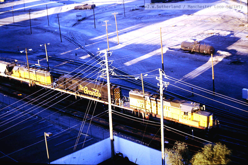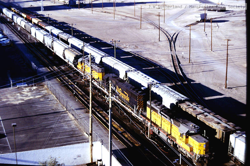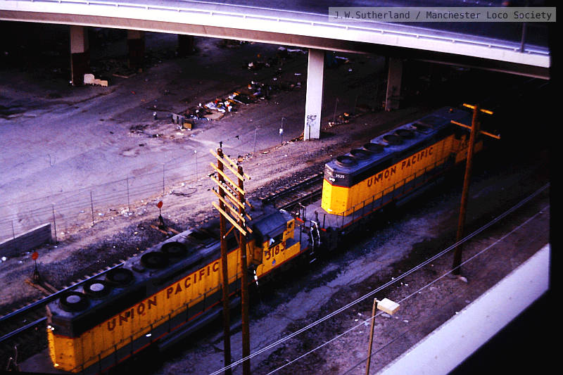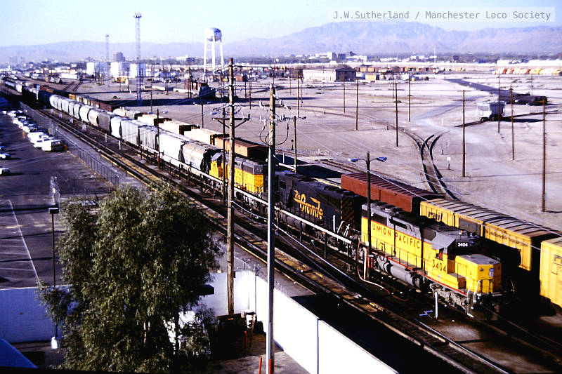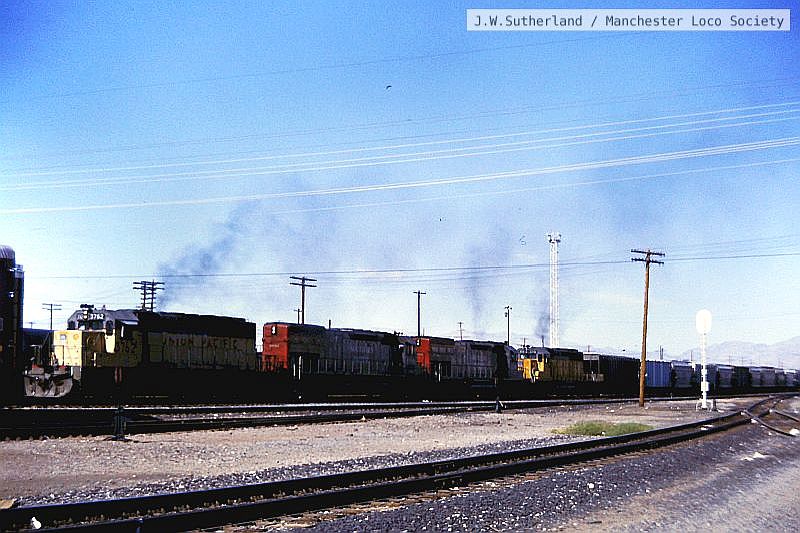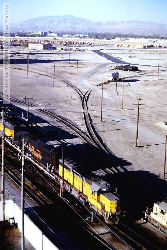 ws315-10: 16.10.89 USA. Las Vegas. from Park Hotel, UP 3535 + 3183 + 3754 + 3922 on 66 cars northbound.